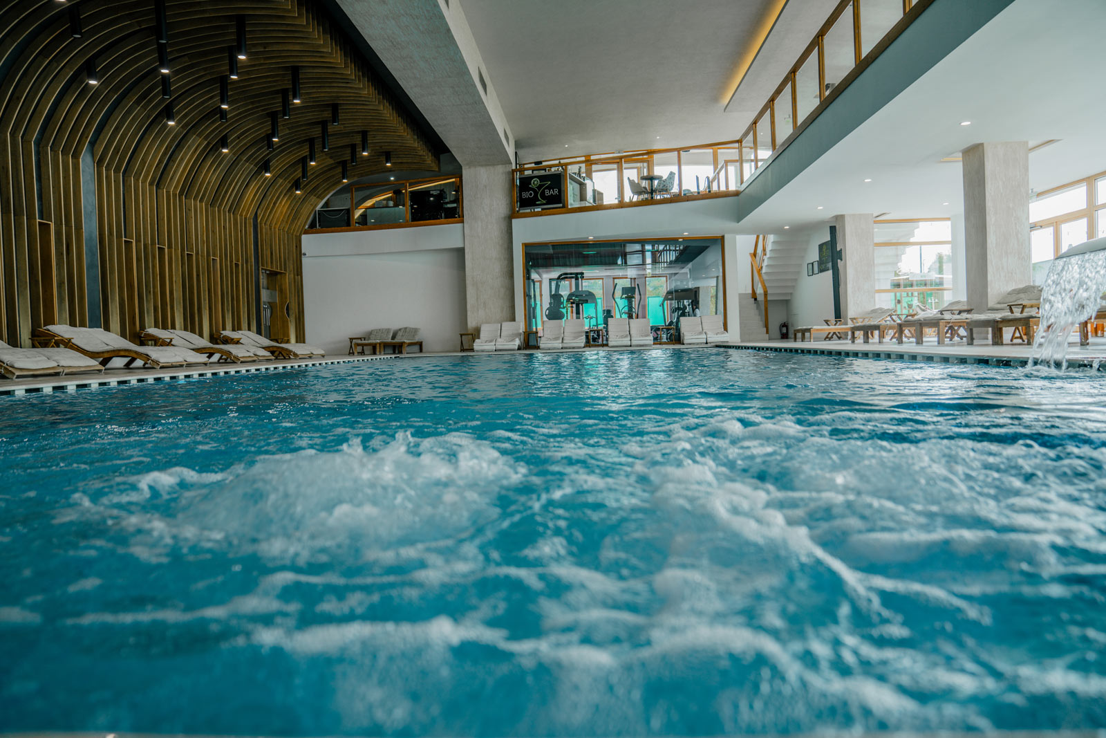 Locul este foarte relaxant si liniștit, de fapt, este intr o zona destul de izolată. Terasa la etaj este foarte frumoasa cu o priveliște liniștitoare. Piscina interioara este destul de mare. Zona de SPA este foarte curata, liniștită si primitoare.
