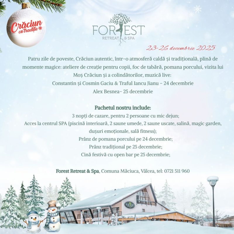 Bucurați-vă de un Crăciun autentic, într-o atmosferă caldă și tradițională, plină de momente magice: ateliere de creație pentru copii, muzică LIVE, foc de tabără, pomana porcului, vizita lui Moș Crăciun și a colindătorilor.
